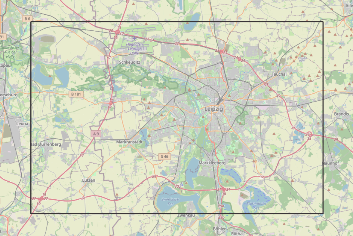 Räumlicher Ausschnitt des digitalen Zwillings Verkehr in der AIAMO Pilotregion Leipzig
